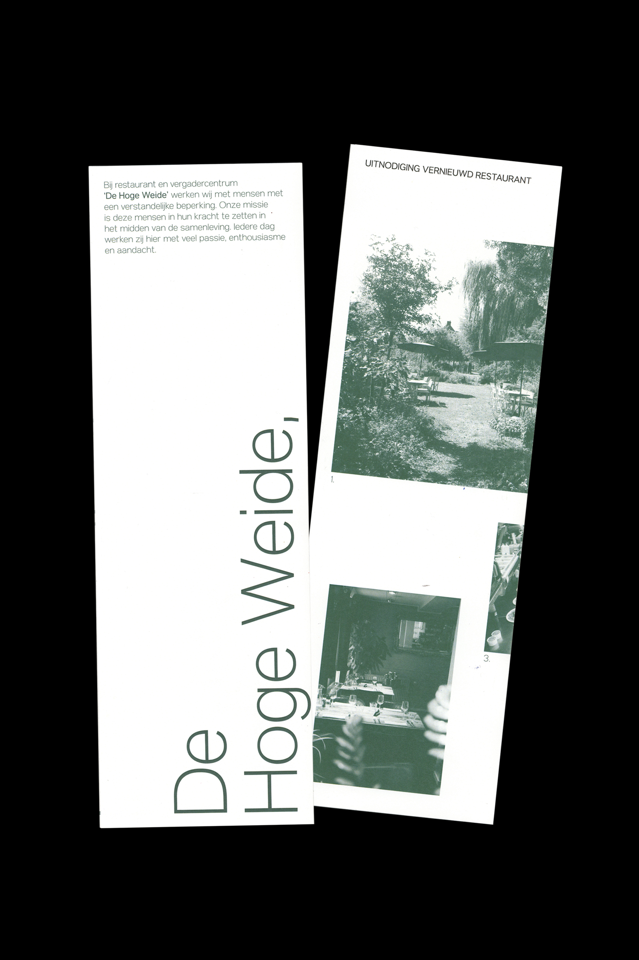 Restaurant ‘De Hoge Weide’ was recently redecorated. Their new visual identity had to match the clean, modern look without losing the warm, intimate atmosphere.