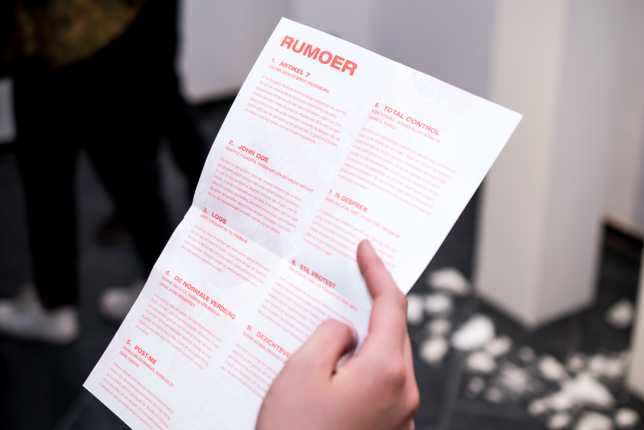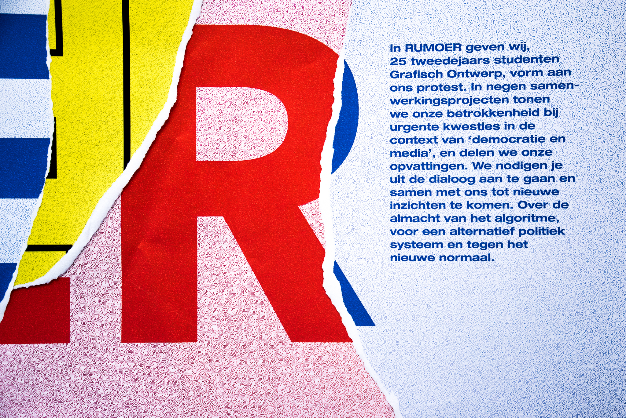 Art direction and exhibition design The exhibition was designed to express the concerns of 25 young designers about the role media plays in a modern democracy. A sense of urgency was created by using tall, black fences, placing the artworks in a different context.